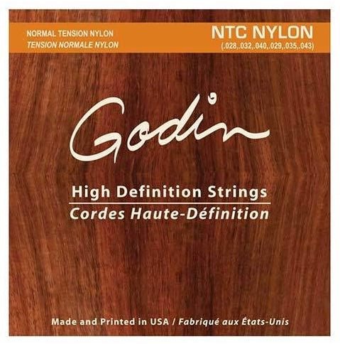 Godin NTC nylon classical guitar strings.Normal Tension Classical: (.028, .032, .040, .029, .035, .043)