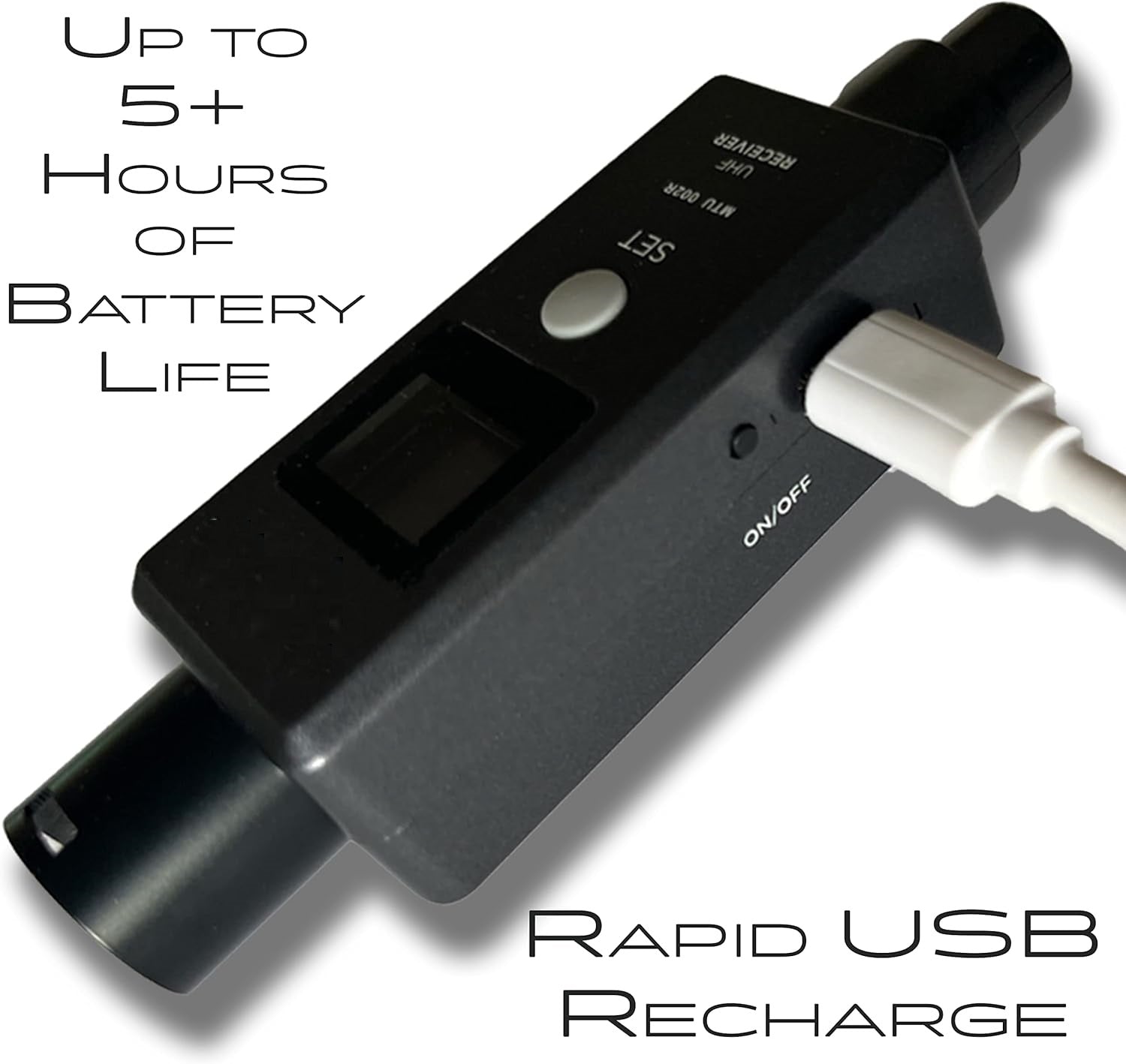 - Wireless Microphone System - 90+ Feet of Crystal Clear UHF Digital Wireless Audio | Up to 5+ hours of Battery Life | Includes USB Charging Cables Works with any Dynamic Microphone