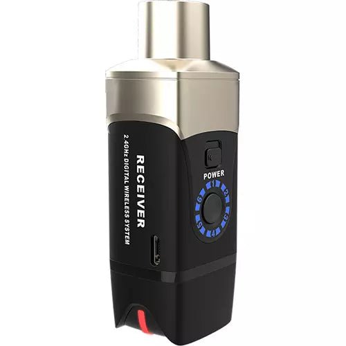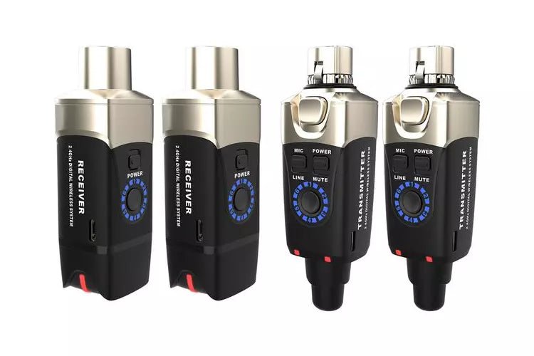 Turn your dynamic microphone into wireless with the U3 2.4 GHz Digital Wireless Microphone System from Xvive Audio. It features a 2.4 GHz wireless band, 20 Hz to 20 kHz frequency response, and less than 5 ms latency. The system works up to 27m range and includes two rechargeable batteries with a five-hour life for both receiver and transmitter units. The transmitter plugs into a dynamic microphone or into DI or XLR output gear, and the receiver plugs into a live sound mixer, portable PA system, or a recorder. This system broadcasts on six channels simultaneously, and is suitable for live vocals, presentations, video productions, and houses of worship.